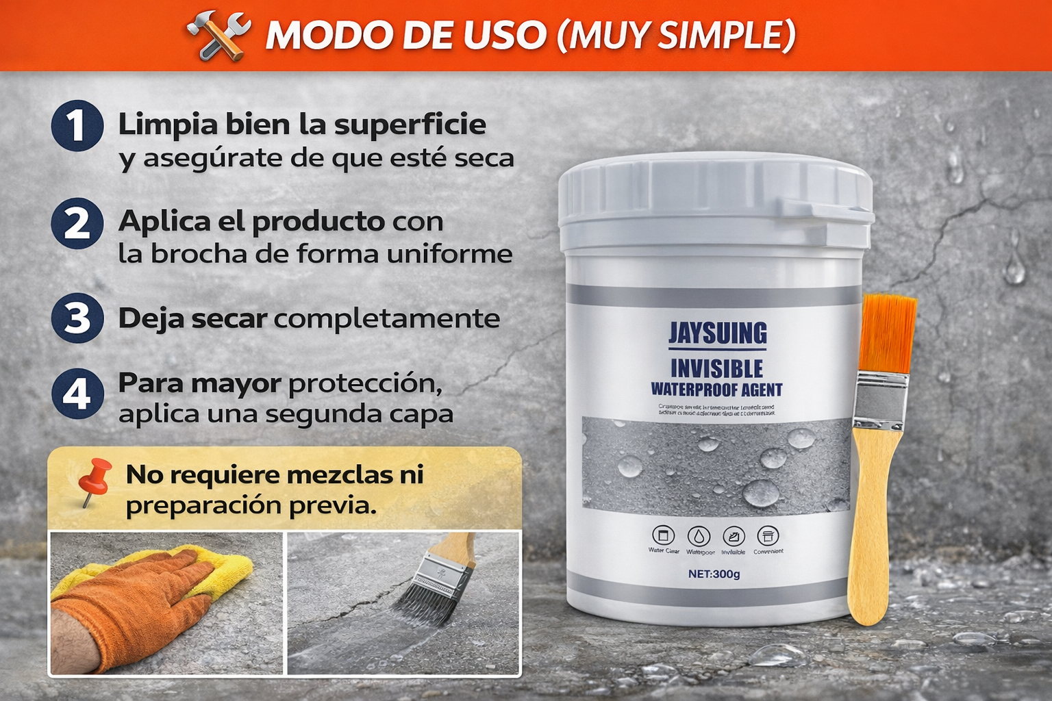 Este Agente Impermeabilizante Invisible sella y protege tus superficies de forma rápida, efectiva y sin dejar rastro visible.