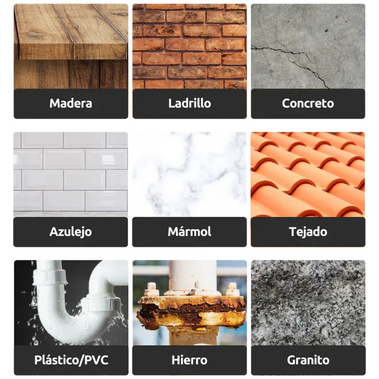 - Superficies de cemento, concreto, cerámica, ladrillo y piedra